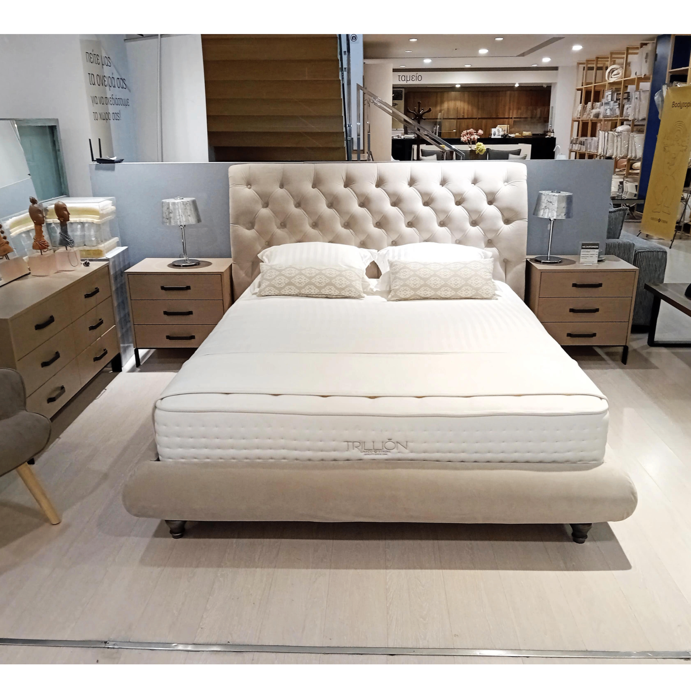Κρεβάτι Sofia επενδεδυμένο με ύφασμα. Σε μοντέρνο σχεδιασμό και διαθέσιμο σε πληθώρα διαστάσεων. Η τιμή είναι ίδια για όλες τις