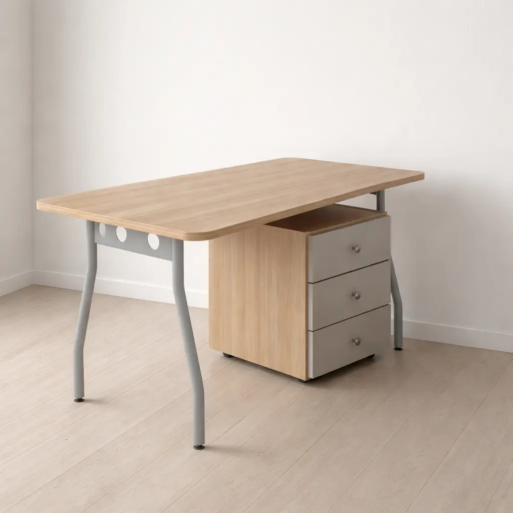 Γραφείο με Συρταριέρα σε Φυσικό Ξύλο & Γκρι