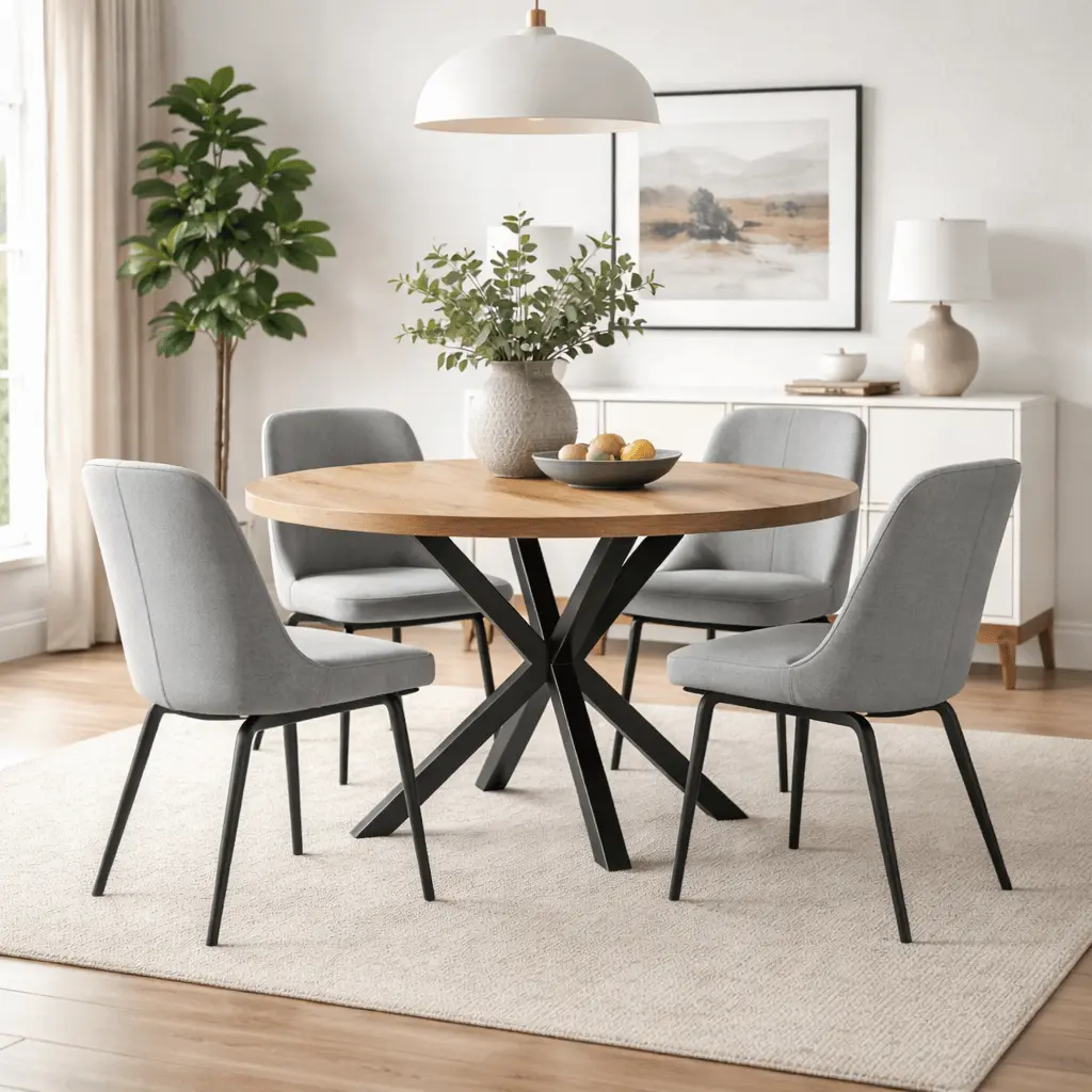 Τραπεζαρία Pattern με διάμετρο Φ120cm άνετη για τουλάχιστον 4 άτομα. Κατασκευασμένη με μια σταθερή μεταλλική βάση και καπάκι 38mm. Διαστάσεις: