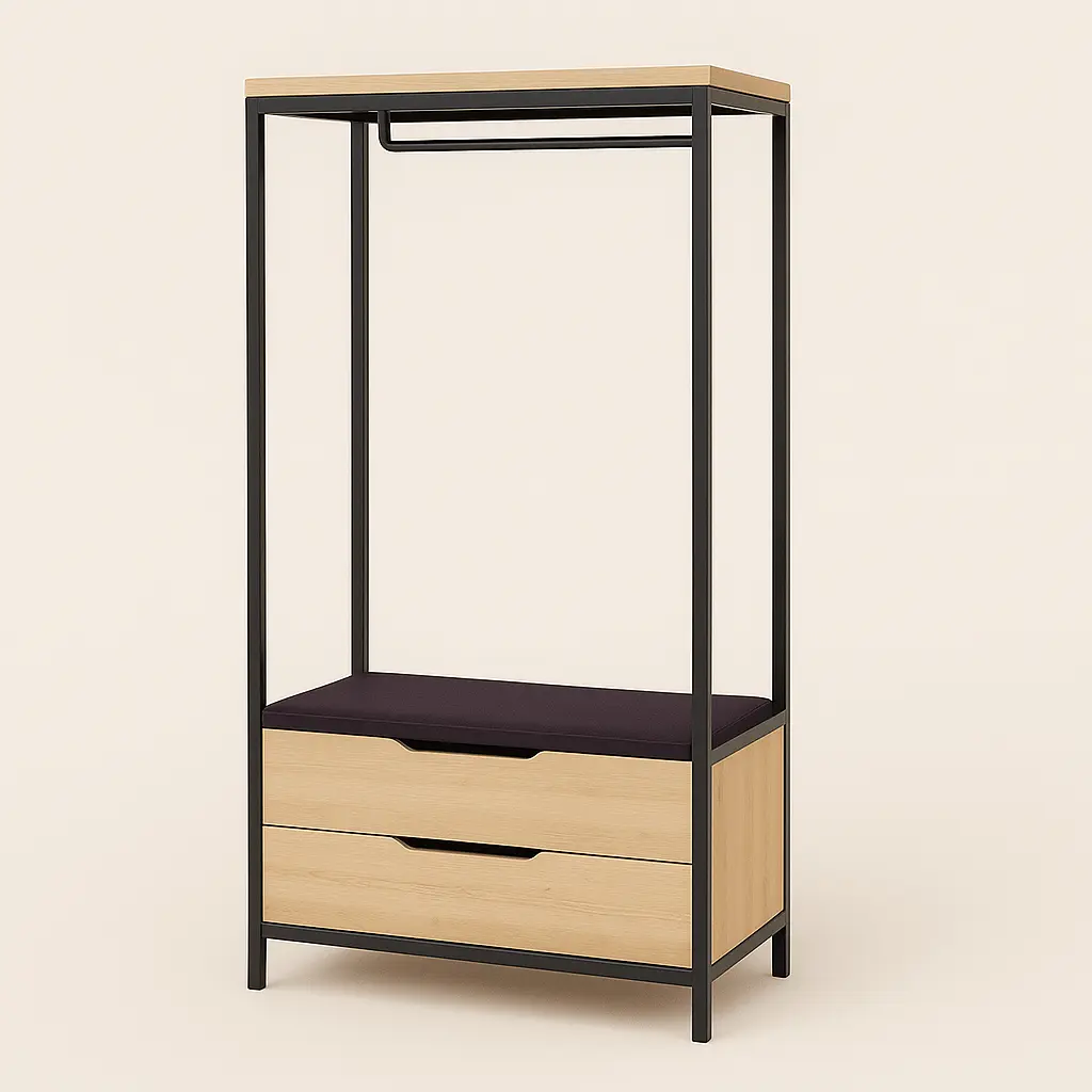 Σας παρουσιάζουμε την ιδανική λύση για τη μοντέρνα και λειτουργική επίπλωση ξενώνων, ξενοδοχείων και ενοικιαζόμενων δωματίων: Ανοιχτή Ντουλάπα με Μεταλλικό