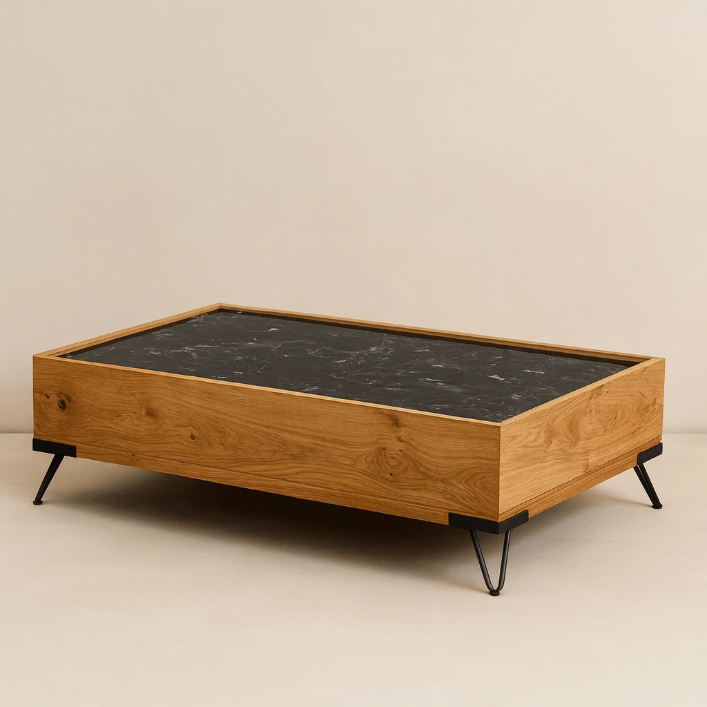 To τραπέζι σαλονιού fable λιτού και πρακτικού σχεδιασμού, τηρεί απόλυτα τις μοντέρνες γραμμές. Κατασκευασμένο από ξύλο δρυός και ξύλινα πόδια