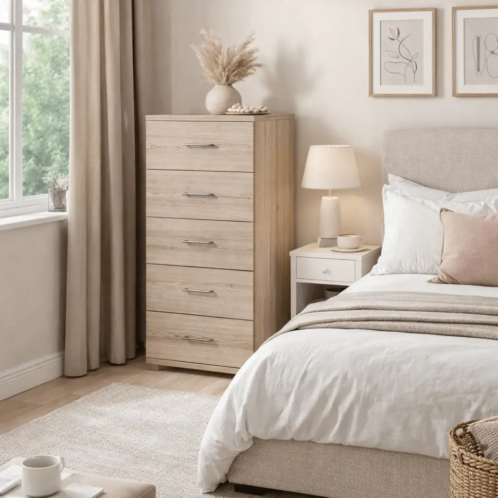 Κρεβατοκάμαρα Sapphire , κατασκευασμένη από καπλαμά δρύ. Σε διάφορες αποχρώσεις . Στο σετ συμπεριλαμβάνεται Το κρεβάτι, η συρταριέρα, το κομό