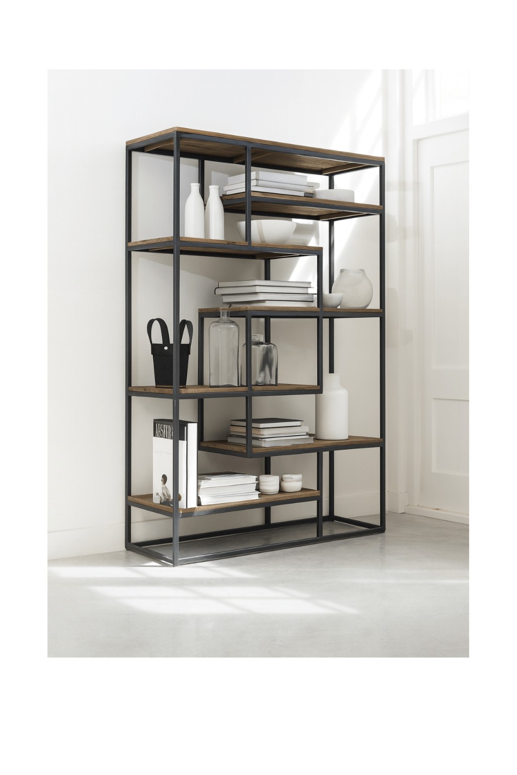 Βιβλιοθήκη-διαχωριστικό SP18. Ιδιαίτερο σχέδιο industrial αισθητικής σε μίνιμαλ και διαχρονικό ύφος. Κατασκευασμένη από μεταλλικό σκελετό ηλεκτροστατικής βαφής και ράφια από δρυς ρουστίκ, συνδυάζει τη λειτουργικότητα με την καλαισθησία.