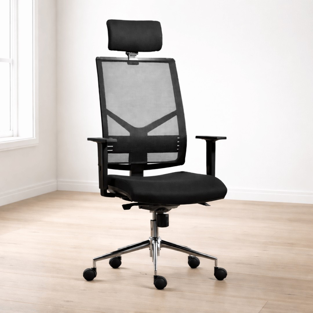 Κάθισμα τροχήλατο διευθυντικό ή εργασιακό με ανατομική άνετη πλάτη σε “δίχτυ”.
