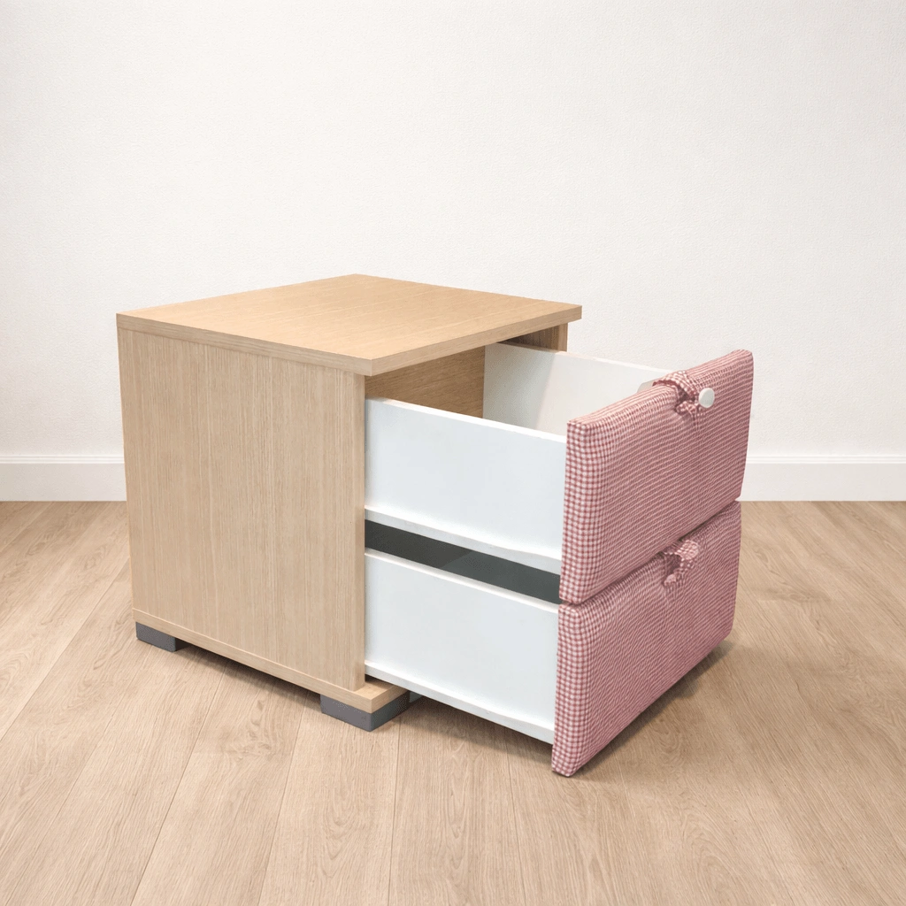 Κομοδίνο με 2 Υφασμάτινα Συρτάρια σε Ροζ Καρό