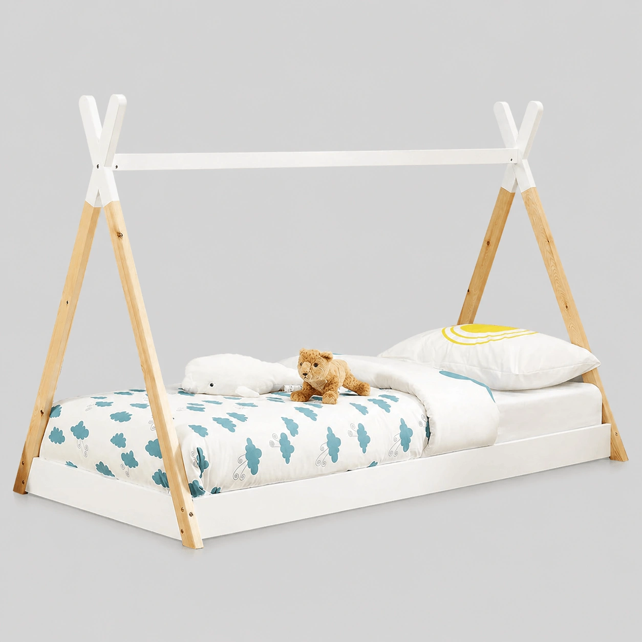 Το MUNK που είναι ένα καινούργιο παιδικό κρεβάτι τύπου Montessori που σημαίνει ότι έχει σχεδιαστεί σύμφωνα με το εκπαιδευτικό σύστημα Montessori, κατά το οποίο τα παιδιά μαθαίνουν καλύτερα, όταν επιλέγουν μόνα τους τι θα κάνουν. Το χαμηλό ύψος κρεβατιού χωρίς πόδια, βοηθά να εξερευνούν την αυτονομία τους και να ανεβοκατεβαίνουν από το κρεβάτι τους ελεύθερα ανά πάσα στιγμή. Είναι σε διάσταση για μονό στρώμα 90×190 εκ, και αποτελεί μια άριστης ποιότητας, μοντέρνα και ασφαλή επιλογή για το παιδικό δωμάτιο. Είναι ξύλινο σε διχρωμία ΦΥΣΙΚΟΥ-ΛΕΥΚΟΥ βαμμένο με αβλαβές βερνίκι με βάση το νερό και μη τοξικό, ιδανικό για παιδιά. Το στρώμα τοποθετείται απευθείας σε τάβλες κατασκευασμένες από ξυλεία κόντρα πλακέ. Το κρεβάτι έχει σχήμα σκηνής που θα δώσει μια ευχάριστη, «ζεστή», και παιχνιδιάρικη όψη σε κάθε παιδικό δωμάτιο.