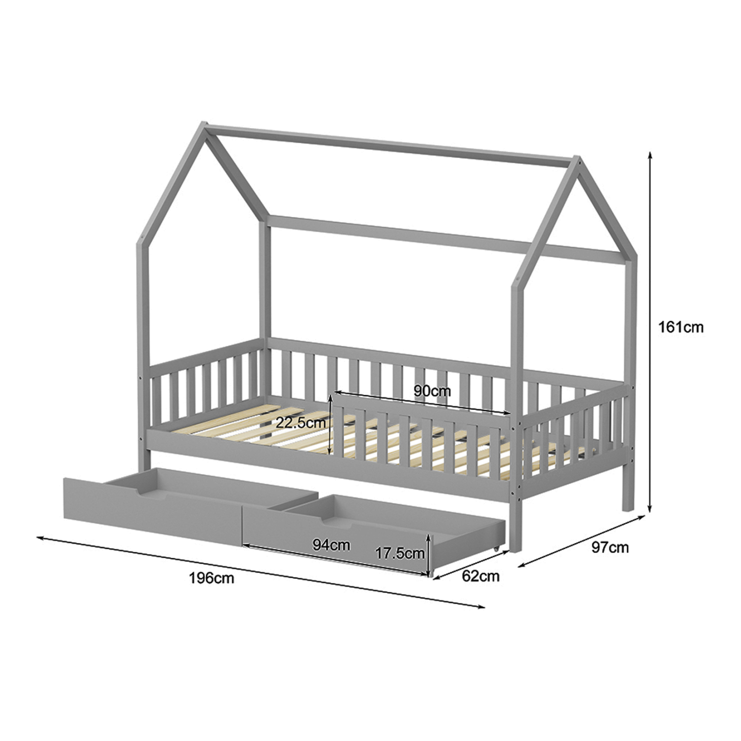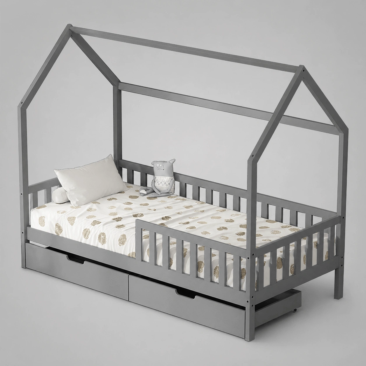 Το στρώμα τοποθετείται σε τάβλες κατασκευασμένες από ξυλεία κόντρα πλακέ. Ολόκληρο το κρεβάτι έχει σχήμα σπιτιού και μάλιστα αρκετά ψηλό, που θα δώσει μια ευχάριστη, «ζεστή», και παιχνιδιάρικη όψη σε κάθε παιδικό δωμάτιο.