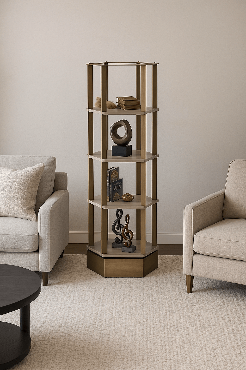 Η περιστρεφόμενη βιβλιοθήκη “Stella” είναι ένα εντυπωσιακό και λειτουργικό έπιπλο, ιδανικό για να προσθέσει στυλ και οργάνωση σε οποιονδήποτε χώρο, ακόμα και σε αυτούς με περιορισμένο εμβαδόν.