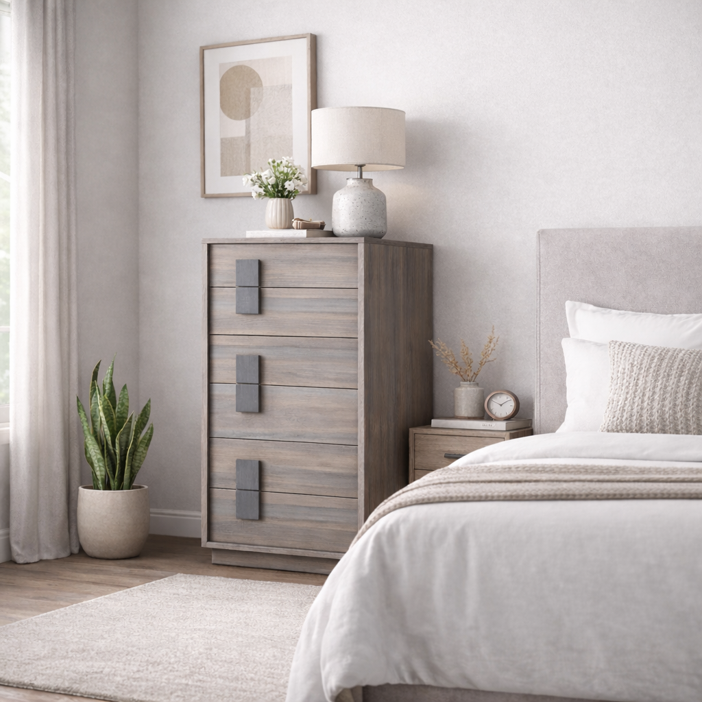 Ανανεώστε το υπνοδωμάτιό σας με αυτήν την κομψή και λειτουργική συρταριέρα, που συνδυάζει μοντέρνο σχεδιασμό με διαχρονική αισθητική.