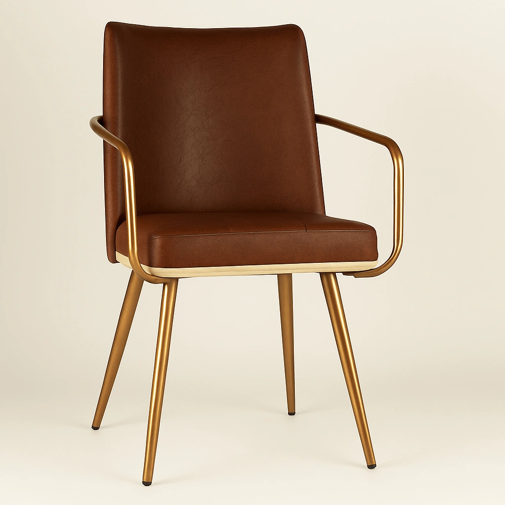 Καρέκλα Μεταλλική με Μπράτσα σε Σκούρο Καφέ Δέρμα